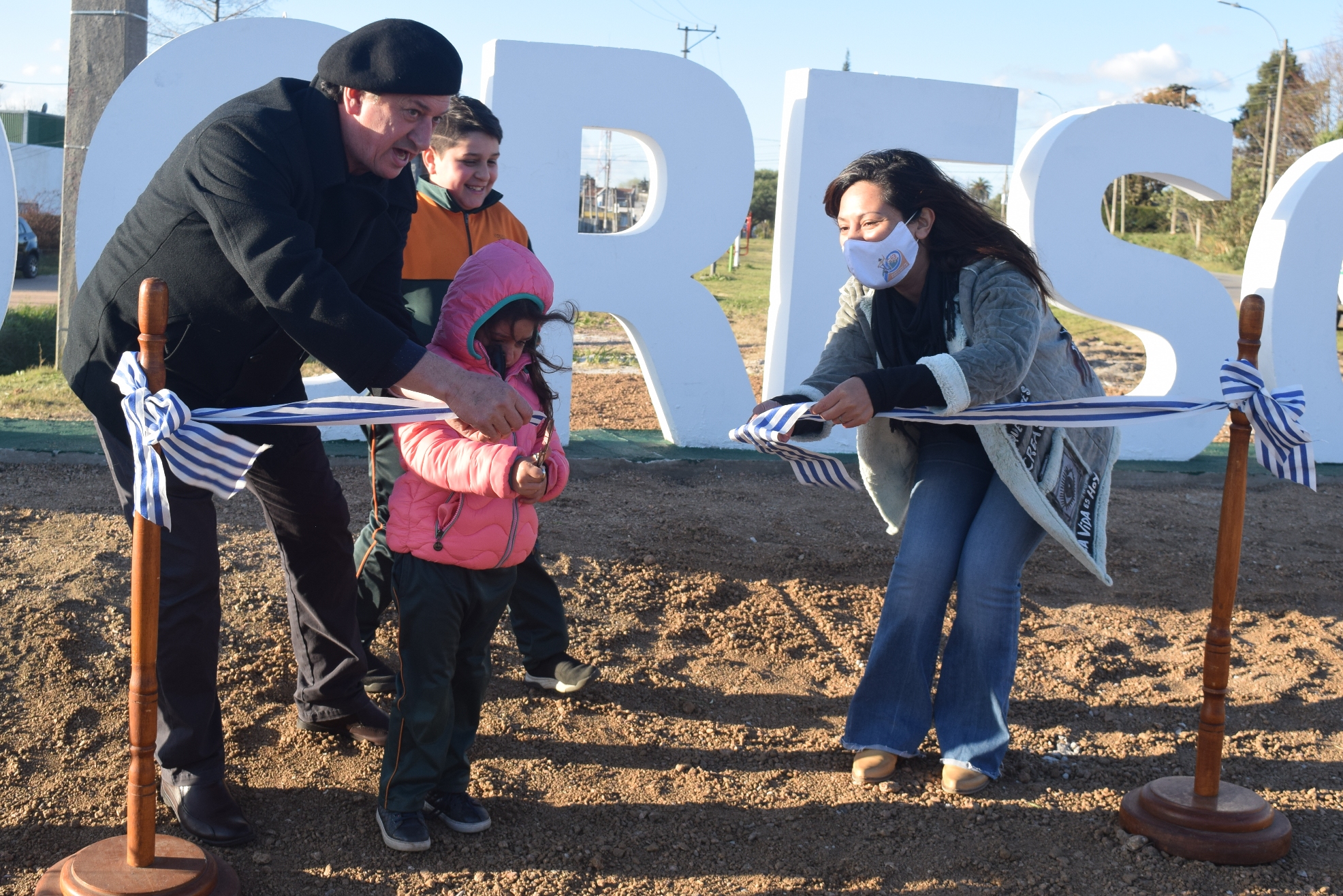Seguidamente se procedió al corte de cinta dejando oficialmente inauguradas las letras corpóreas que dan nombre a nuestra ciudad; acompañando dicho acto un par de niños que estaban presentes en la fría tarde.