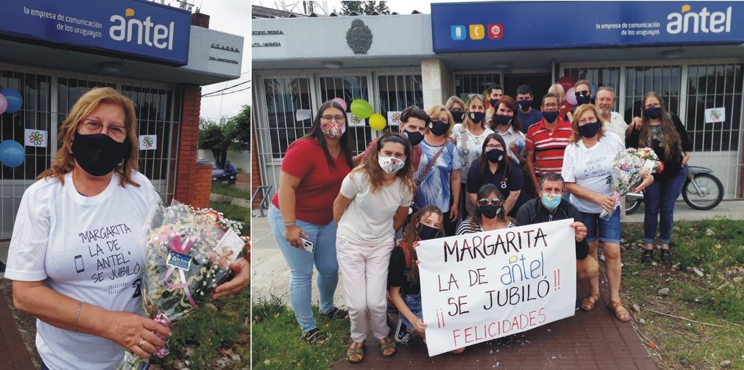 El pasado 30 de diciembre y luego de casi 40 años de labor en el ente (1981) Margarita “La de Antel”, como muchos la conocen, finalmente se jubiló, sin duda, una persona muy querida por todos. A un mes de jubilarse Margarita confiesa que si bien extraña el trabajo y el trato con el público, está empeñada en descansar, hacer otras actividades que le apasionan y disfrutar de su esposo, sus hijos Darío (40), Melisa (35), y Sebastián (25), y sus nietos.