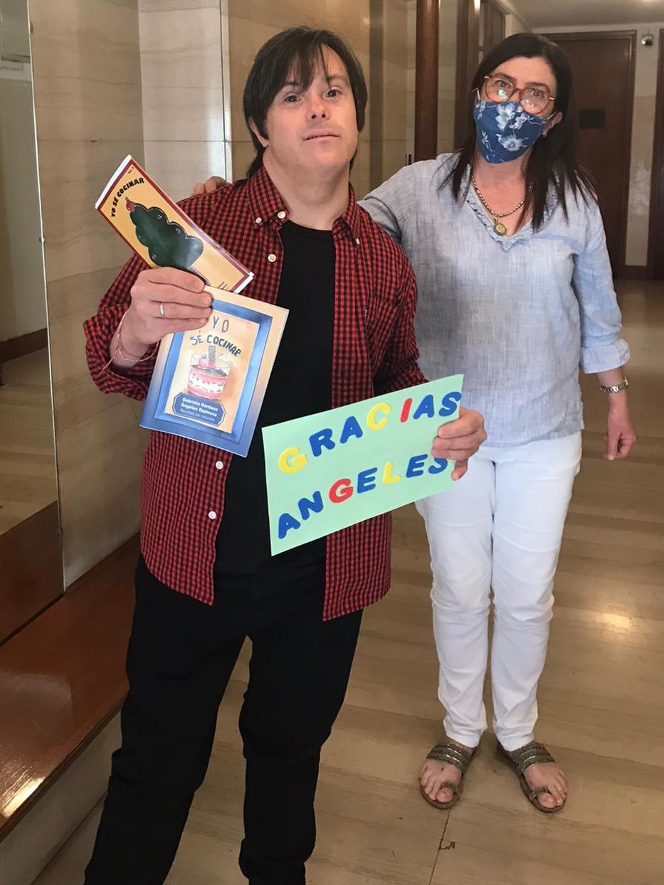 Gabriela Gordano- Cuando ingreso en la fundación conozco una chef que me vio cocinar y me propuso dar talleres de cocina con ella para los chicos con síndrome de Down y este año como tuvimos clases virtuales cuando comenzó la pandemia nos pusimos a hablar con una amiga que vive en Argentina llamada Ángeles Espinosa que también tiene pasión por la cocina, es escritora y artista plástica, para ver cómo podíamos ayudar a estos chicos para que empezaran a tener cierta independencia, que pudieran cocinar cosas que les resultaran fáciles y cómodas poder hacerlas mirando un libro y así surge la idea de hacer este trabajo para ellos.