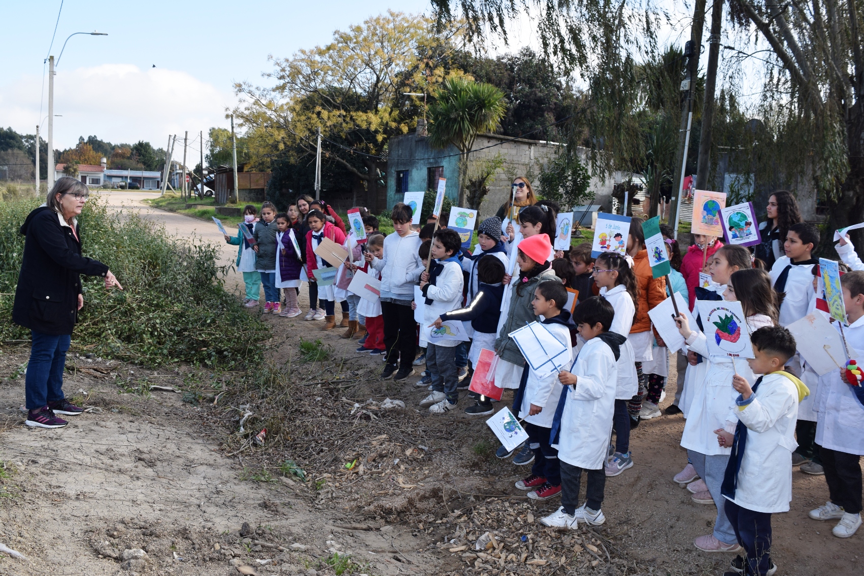 “Por su parte en el día de hoy participaron de una charla brindada por la Unidad de Educación Ambiental del Gobierno de Canelones donde retomaron conceptos trabajados el año pasado y luego los alumnos de 1º,2º y 4º Año realizaron una recorrida por el barrio donde colocaron un cartel y plantaron plantas en espacios donde antes había un basurero que fueron limpiados por parte del gobierno de Canelones y los vecinos del barrio; después los niños les entregaron a los vecinos cartelería y afiches relacionados al cuidado del medioambiente que ellos mismos habían elaborado previamente. Les gustó mucho, estaban muy entusiasmados…”, agregó.