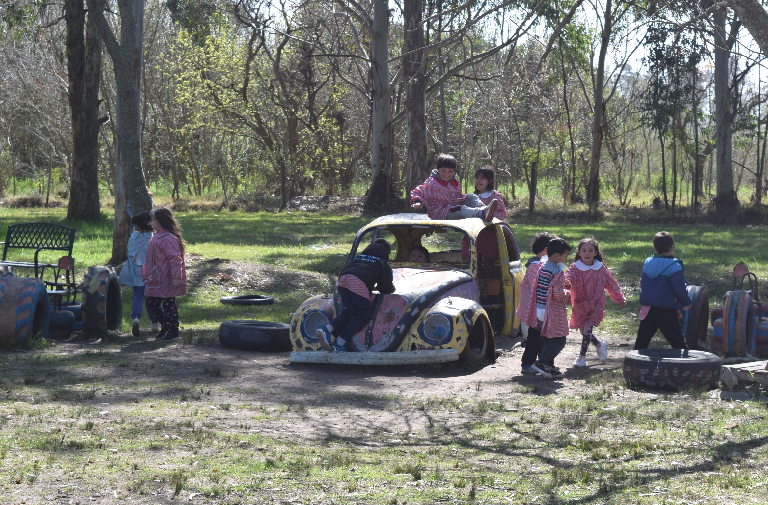 En el ´82 se hace el traslado a la Escuela 204 donde hay una anécdota de una Citroen Meharí roja que transportaba las carpetas, el mobiliario y en el trayecto más de alguna cosa voló por los aires. Allí había dos salones y un espacio que se destinó para preparar la copa de leche donde la clase jardinera estaría formando parte del jardín de infantes. Durante todo ese tiempo con el apoyo de vecinos de la zona e instituciones se comenzaron a generar beneficios, actividades y eventos para poder contar con fondos para construir un espacio propio, se realizaron varias expoferias y una de ellas fue muy recordada porque se destinó al jardín de infantes un stand donde se vendían manualidades y alimentos para terminar de reunir el dinero que se necesitaba para construir el edificio, alambrar la zona y tener la institución en condiciones. Fue así que a partir del 10 de noviembre de 1983 la institución escolar comienza a funcionar en este centro que estamos hoy.