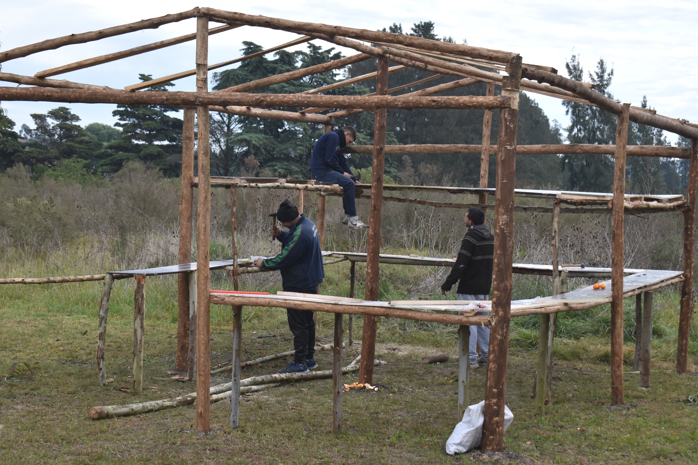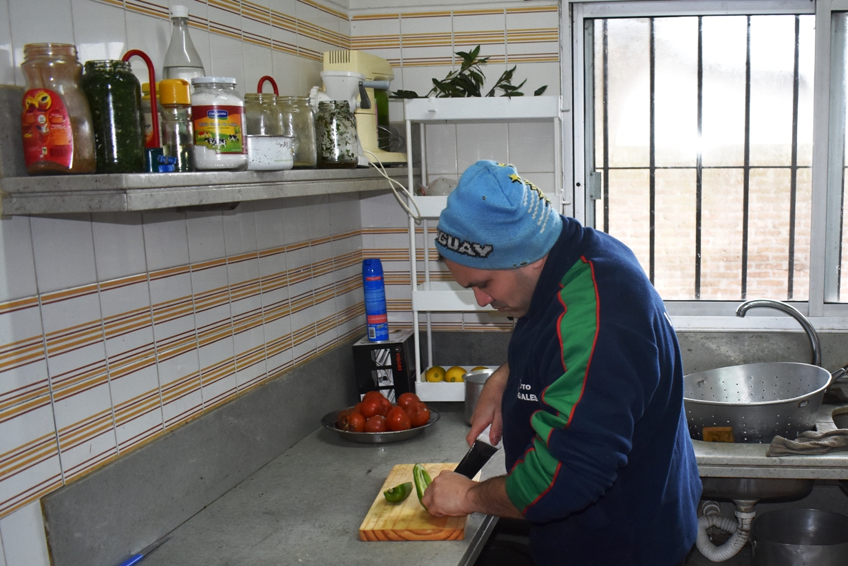 Julio Alvarado- Se ha estado hablando de que pueda venir gente de INEFOP a capacitarlos pero por ahora los damos nosotros mismos de acuerdo al conocimiento que tenga cada uno. Se les pregunta qué saben hacer, qué habilidades tienen y se les va dando confianza y te impresiona las cosas que pueden llegar a hacer. Hay un compañero que hizo una estufa con una heladera vieja, hizo un horno de barro, también hizo una olla con un calefón, está bueno el hecho de sentirse útil y capaz de hacer cosas. Otros tienen conocimiento de cocina y son los encargados de hacer las cuatro comidas del día con los víveres que nos llegan del INDA.